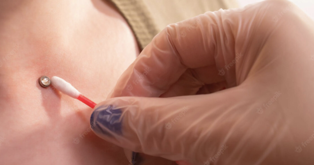 • Be careful with snagging and catching on clothing, jewellery and other objects. As most surface piercings are done on the nape of your neck, collar bone and your pubic region, all these places are prone to snagging risks. Hence, you need to be more careful while brushing, wearing clothes or doing anything else near the piercing; wait till it heals completely.