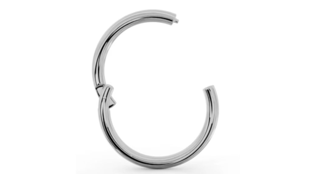 Clicker rings are similar to hinged segment ring the only difference between both of them is that, it has a half-loop shape with a clasp that clicks the hoop ring into place.