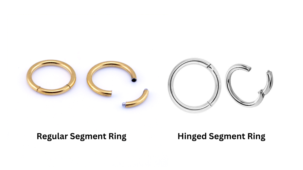 - Regular segment rings- It consists of a segment that can be removed completely before putting in and taking out the hoops.